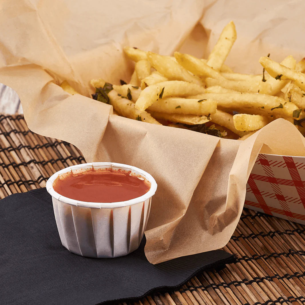 Upgrade your service with our 1.25 oz disposable paper portion cups. Save time, reduce waste, and increase convenience with these durable, efficient cups suitable for any food service business.