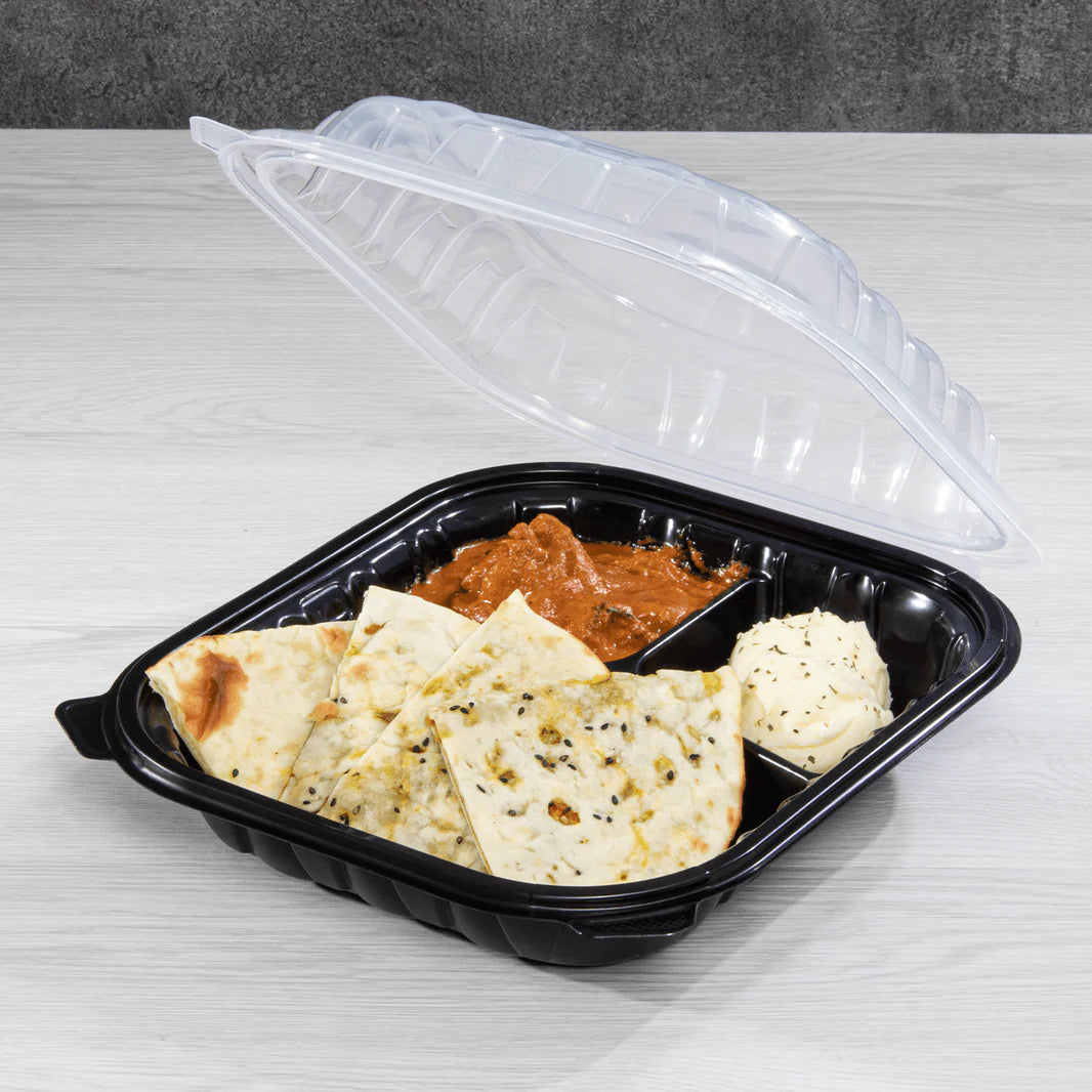 Introducing our 10.25"x 9" Premium PP Hinged Container with 3 compartments. Convenient and durable, this plastic container allows for easy storage and organization of food items. Perfect for on-the-go meals, picnics, and more.