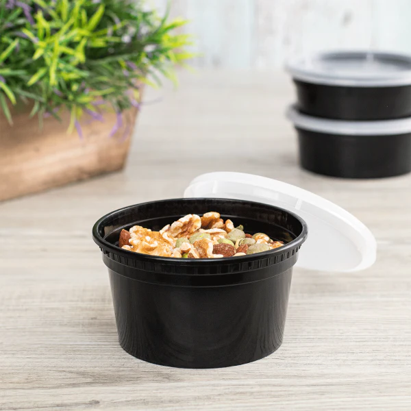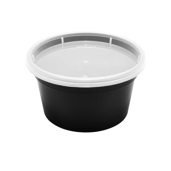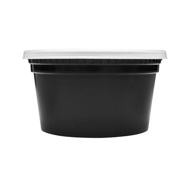 12oz Black PP Injection Molded Round Deli Container with Lid