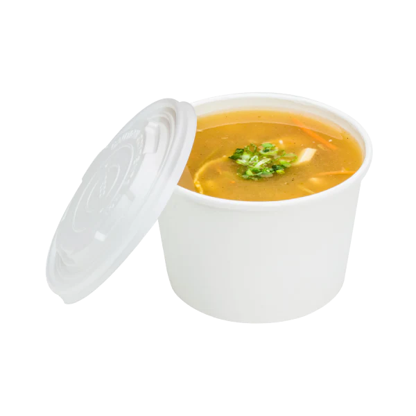 - Matching Lid: Compostable Flat Lids and Fiber Paper Flat lid, sold separately.
