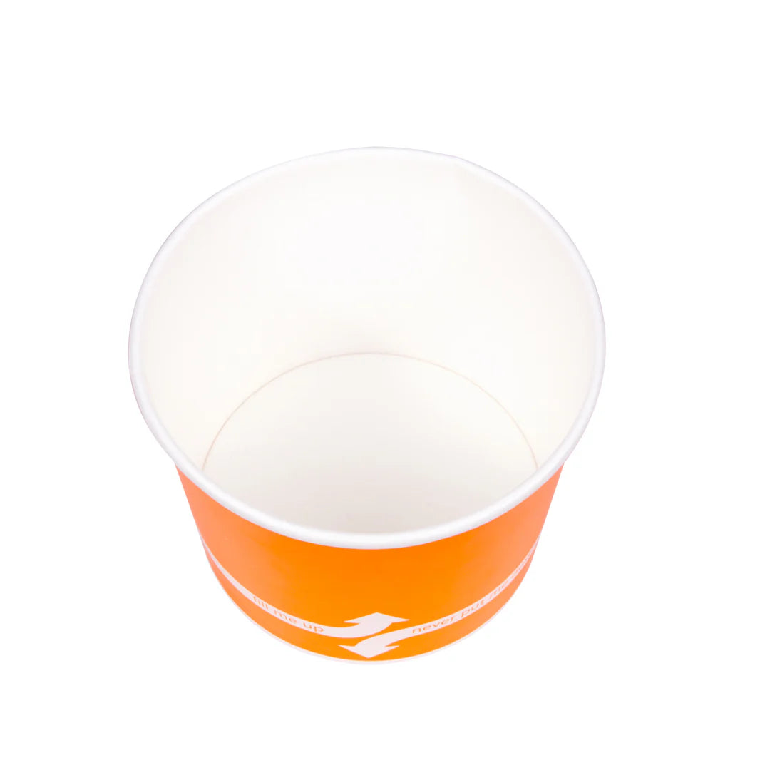 Introducing our 16oz food containers in a vibrant orange color. These paper containers are perfect for storing and transporting food, keeping it fresh and secure. A must-have for any food business.