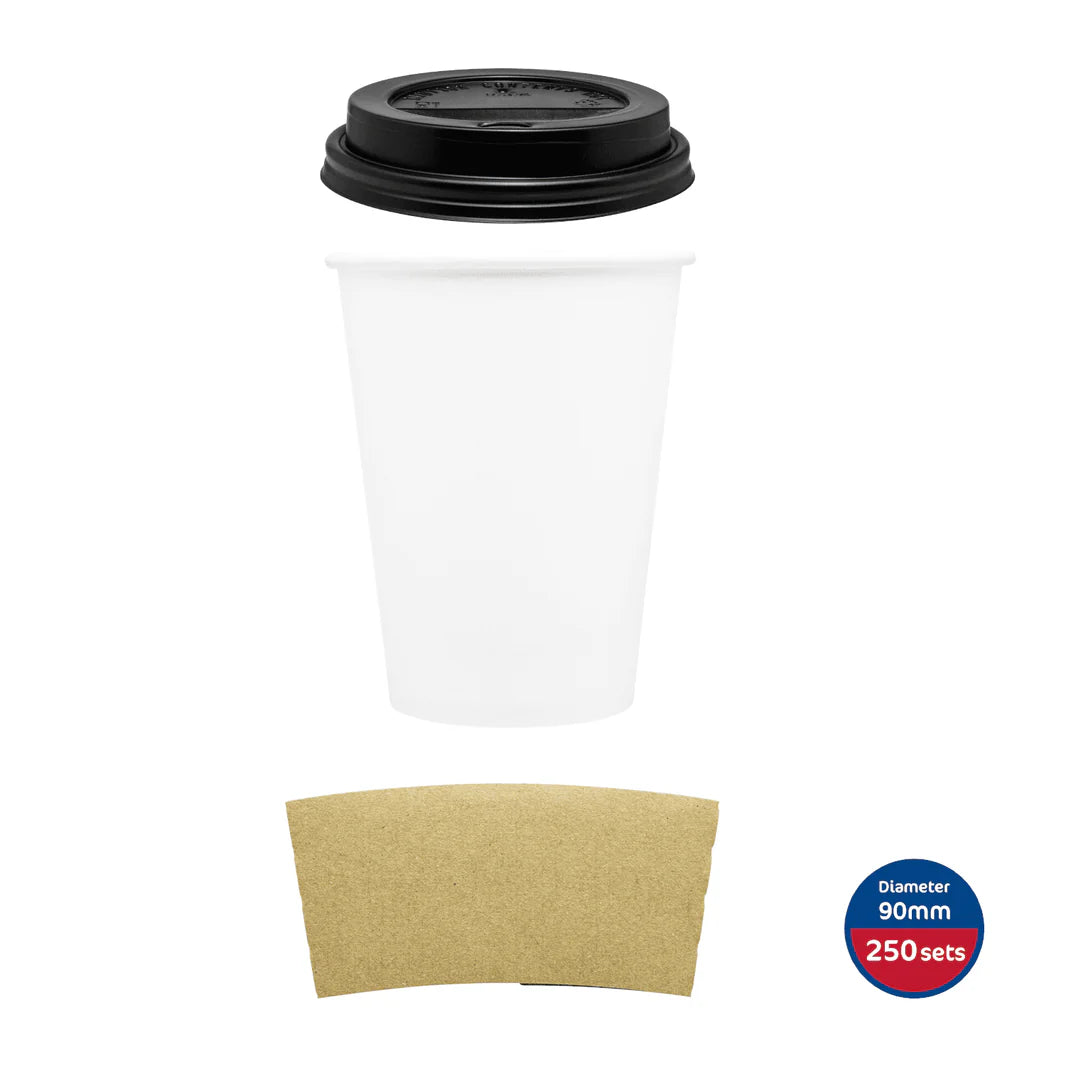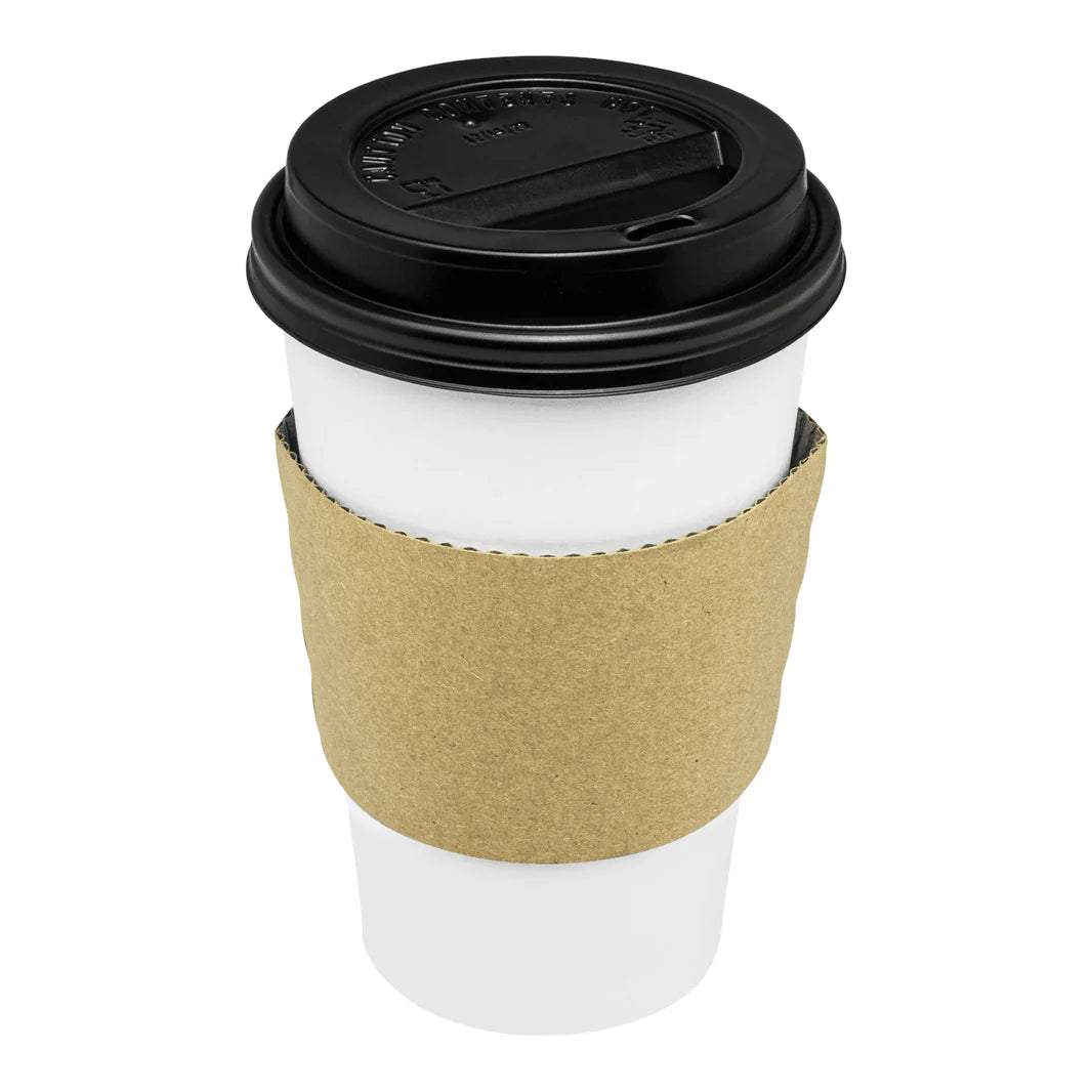 16oz White Paper Hot Cup With Black PP Sipper Lid and Cup Jacket