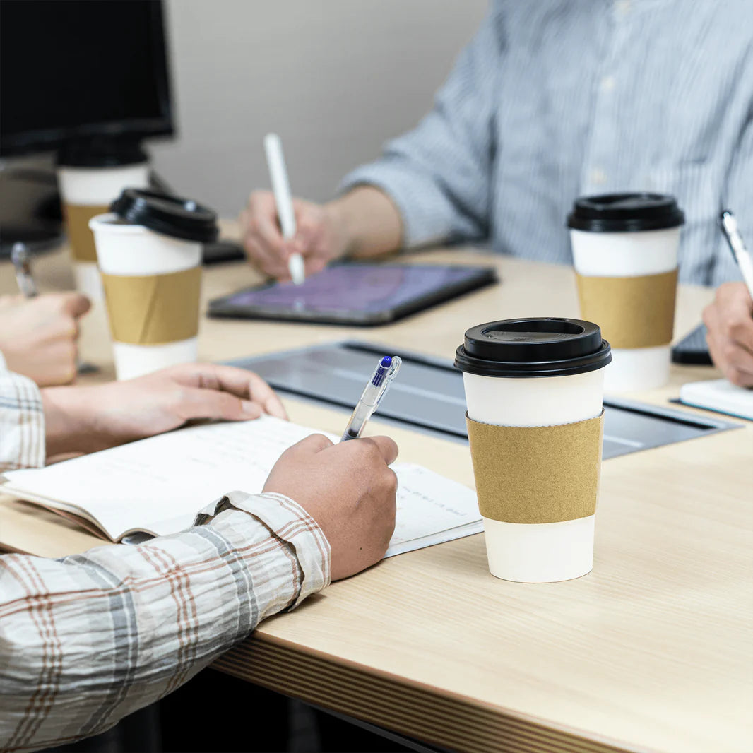 Introducing our 16oz White Paper Hot Cup, complete with a Black PP Sipper Lid and Cup Jacket. Enjoy your hot drinks on the go with ease and without spills. Stay warm, stylish, and eco-friendly - all at once. Say no to single-use cups and hello to convenience.
