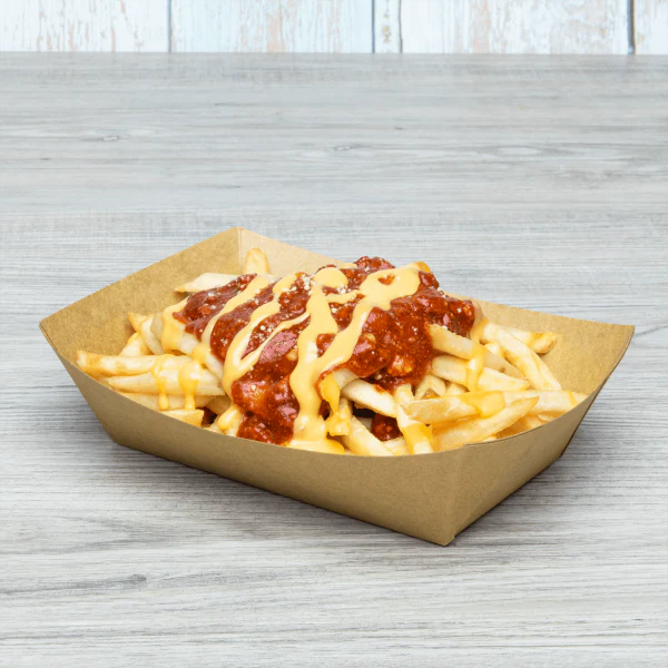 This 2.5 lb Food Tray is made of durable kraft material, ensuring safe and secure food packaging. Its sturdy design allows for easy transport and handling, making it perfect for catered events, food trucks, and takeout orders. Keep your food fresh and protected with this reliable kraft food tray.