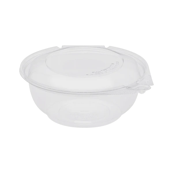 24 oz PET Plastic Tamper Resistant Hinged Salad Bowl with Dome Lid