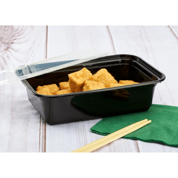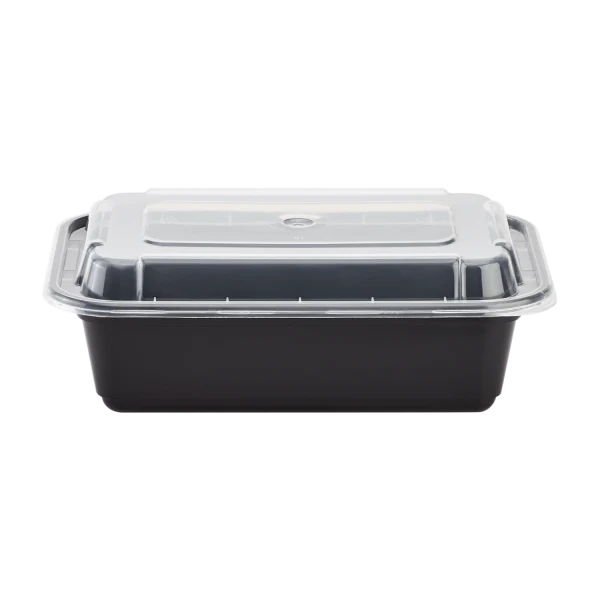 24 oz PP Plastic Microwavable Rectangular Food Containers & Lids, Black