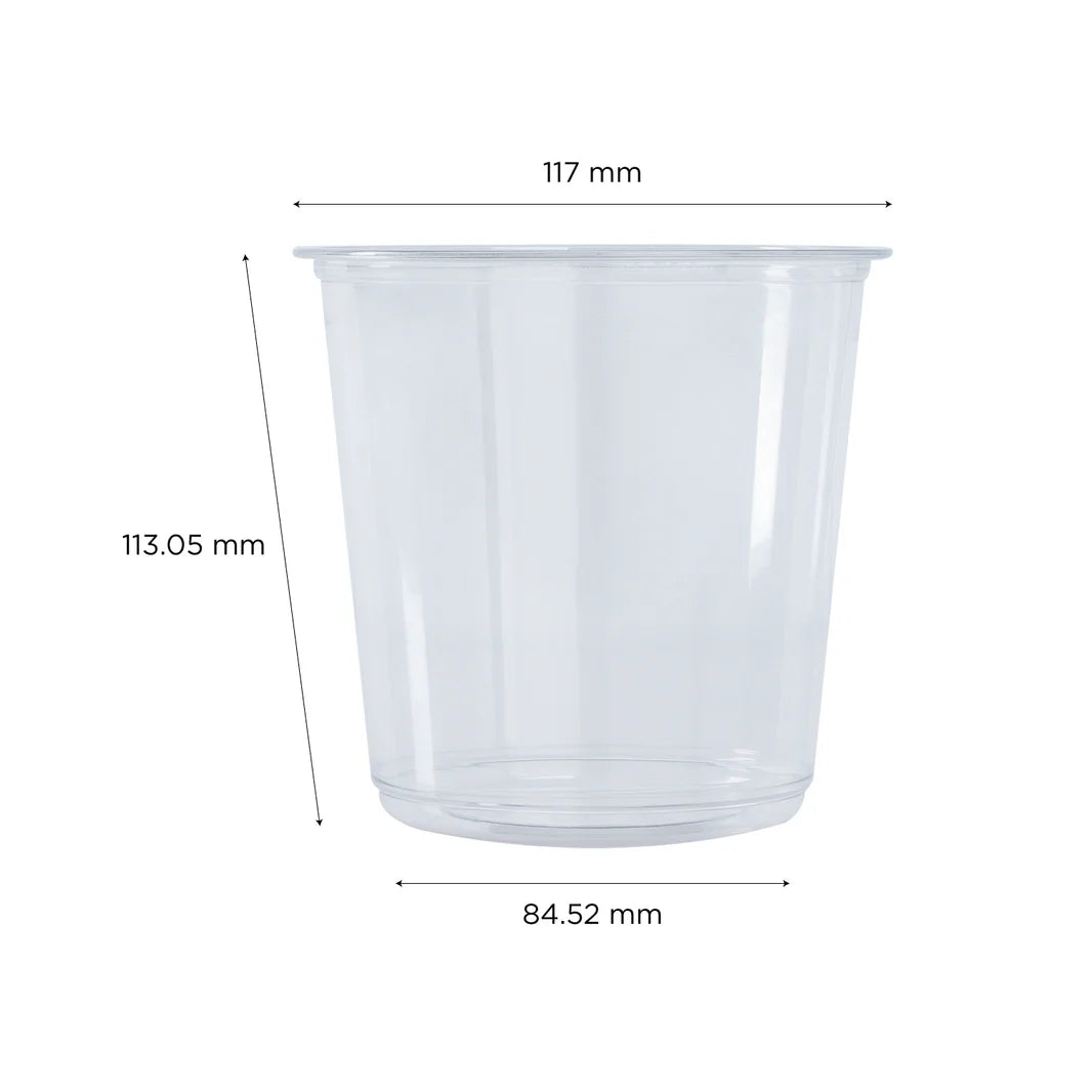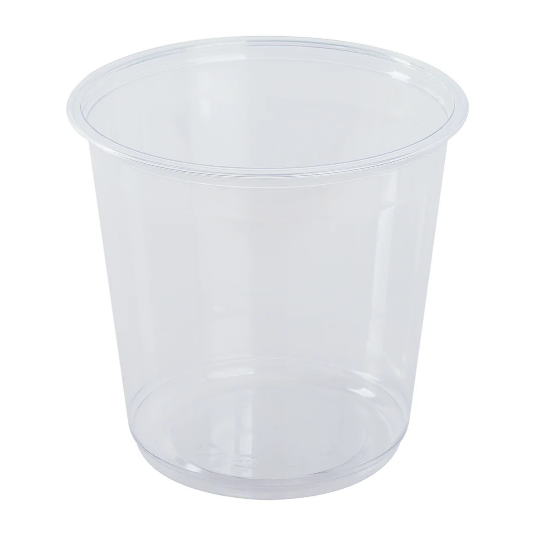 Introducing our 24oz PET Round Deli Container! Perfect for storing and transporting food. This container's round shape makes it easy to store and access food, while its 117mm size allows for plenty of room. Durable and convenient, it's a must-have for any deli or food establishment.