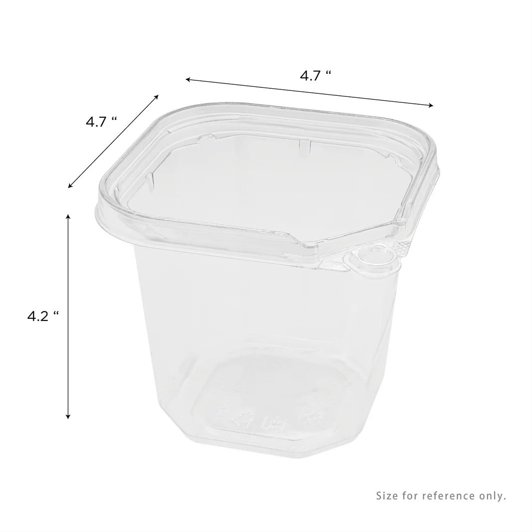 Introducing our 24oz PET Tamper Resistant Square Container in Clear. Perfect for deli items, our square container ensures freshness and security for your food. Made with durable PET material, it's also durable and sturdy. Get yours now for the ultimate food storage solution!