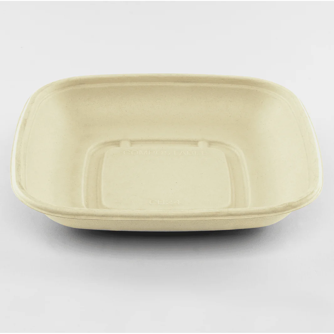 24oz PFAS Free Bagasse Square Bowl, Natural