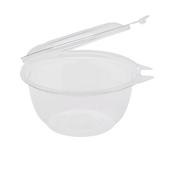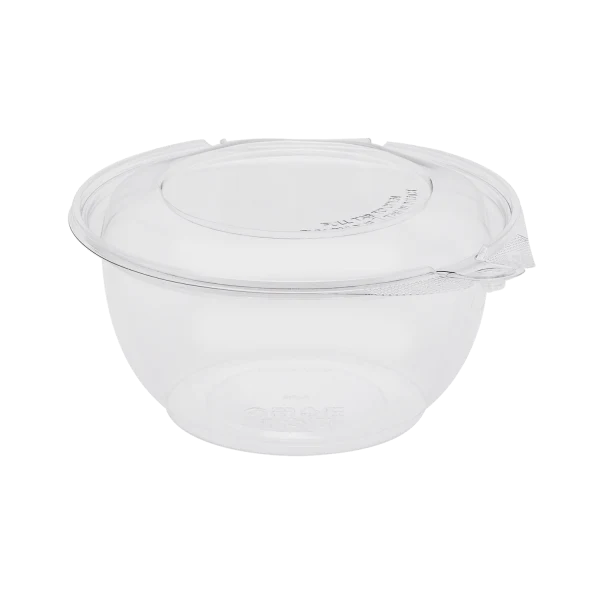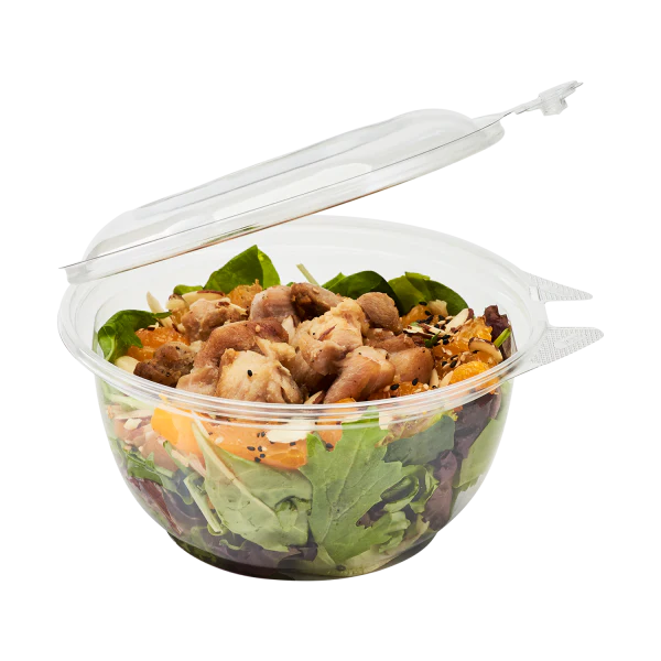 32 oz PET Plastic Tamper Resistant Hinged Salad Bowl with Dome Lid