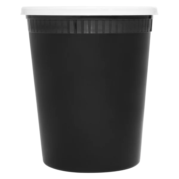 Introducing our 32oz Black PP Injection Molded Round Deli Container with Lid - the perfect solution for your food storage needs! Made with durable plastic, this container comes with a secure lid for freshness. Easily store and transport your deli items and keep them fresh for longer.