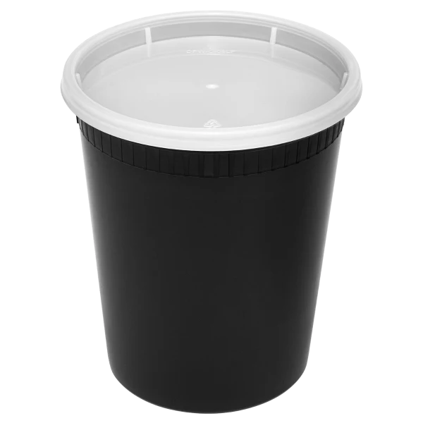 32oz Black PP Injection Molded Round Deli Container with Lid