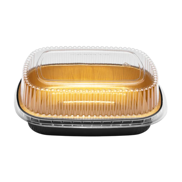48oz Black and Gold Aluminum Pans with PET Dome Lids