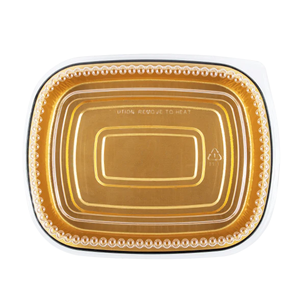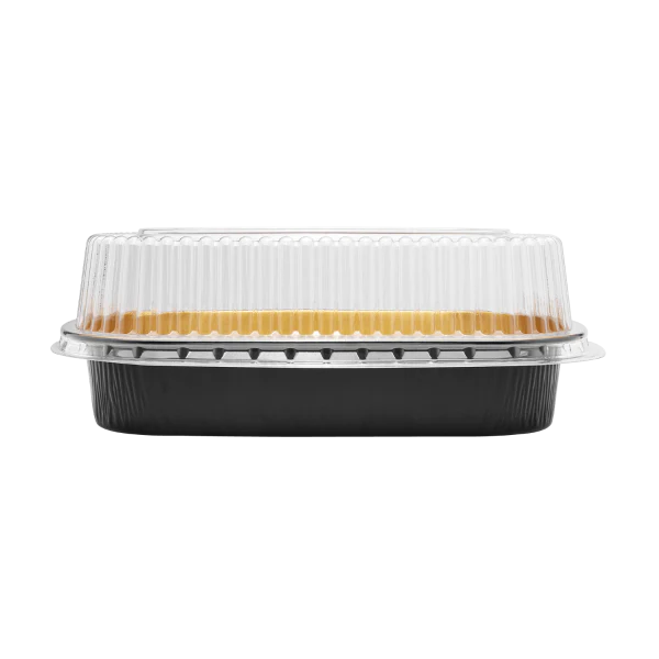 Introducing our 48oz Black and Gold Aluminum Pans with PET Dome Lids! Perfect for both baking and takeout, these containers are made with durable aluminum to ensure your food stays fresh and secure. No need to transfer your dishes, simply bake and serve in one convenient container. Upgrade your food packaging with our stylish, functional containers.