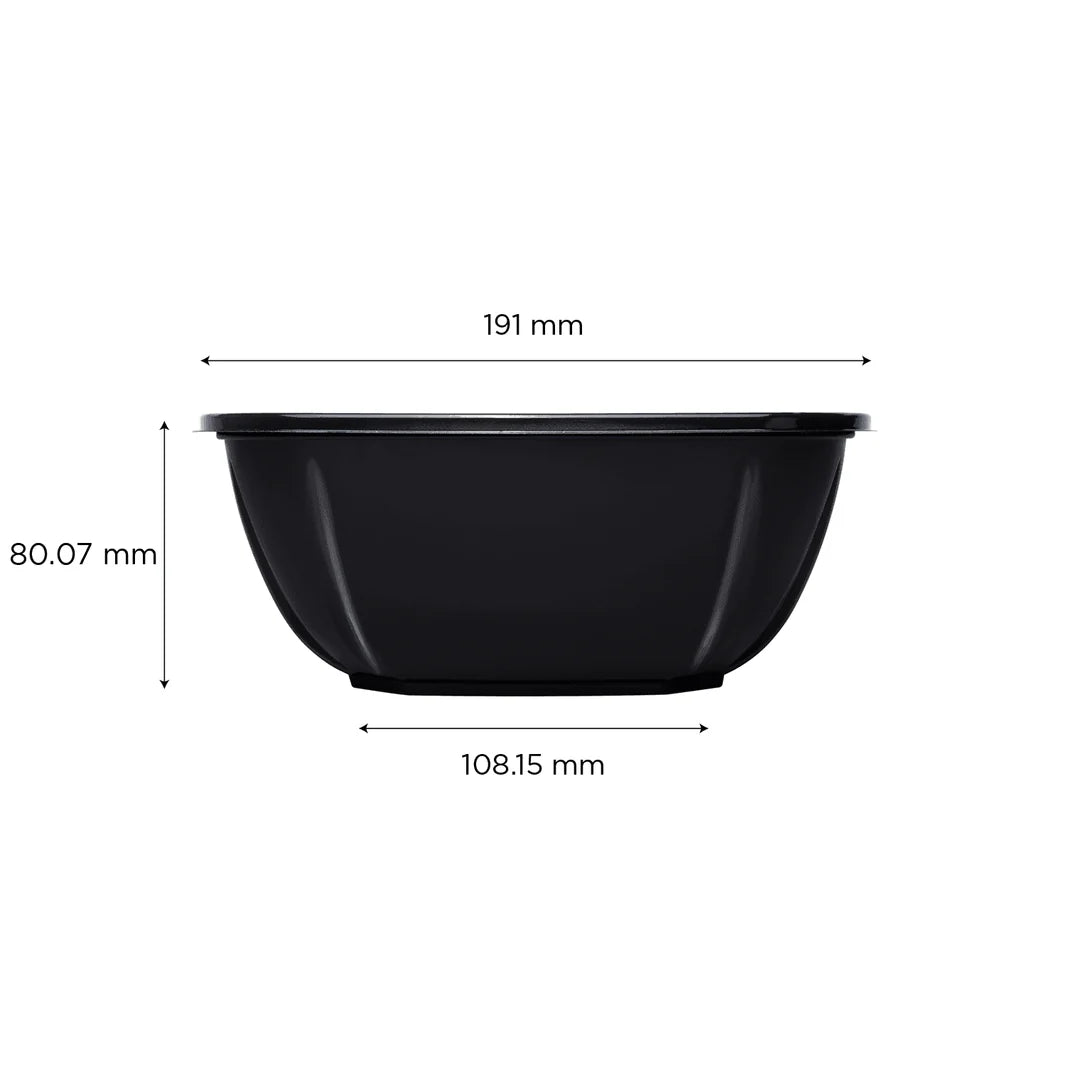 48oz PET Square Bowl, Black