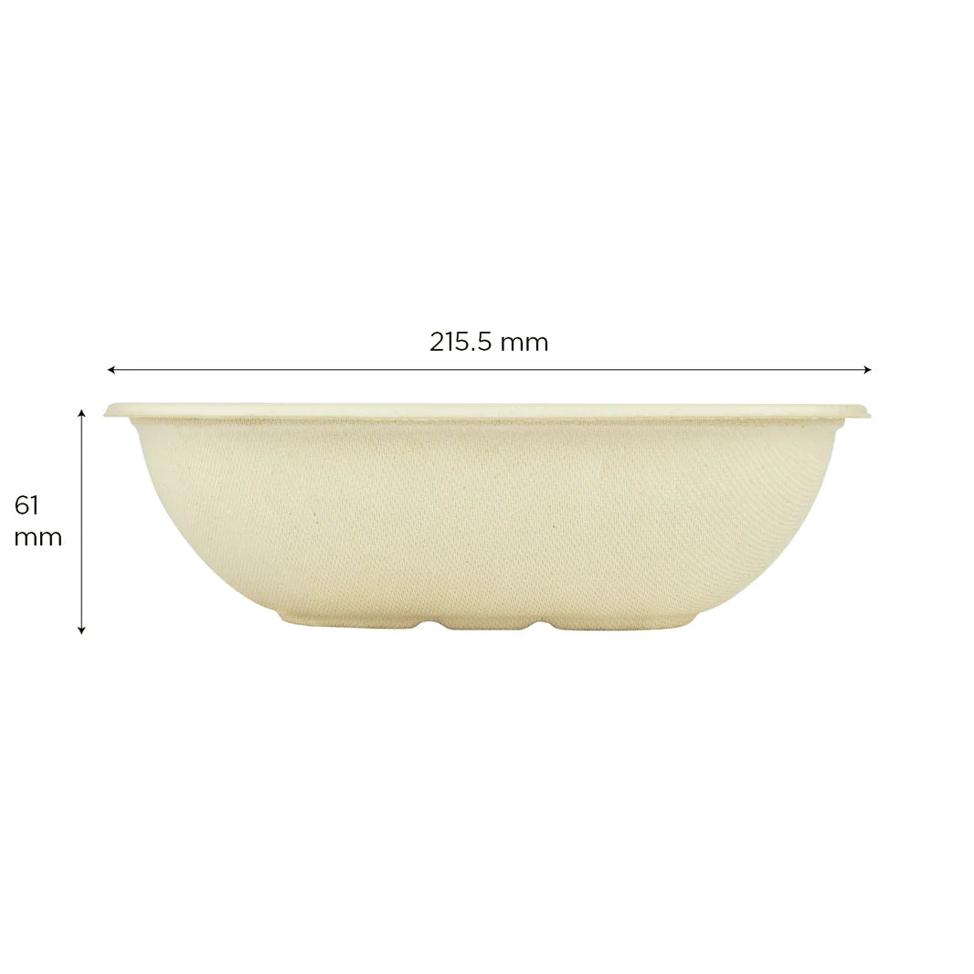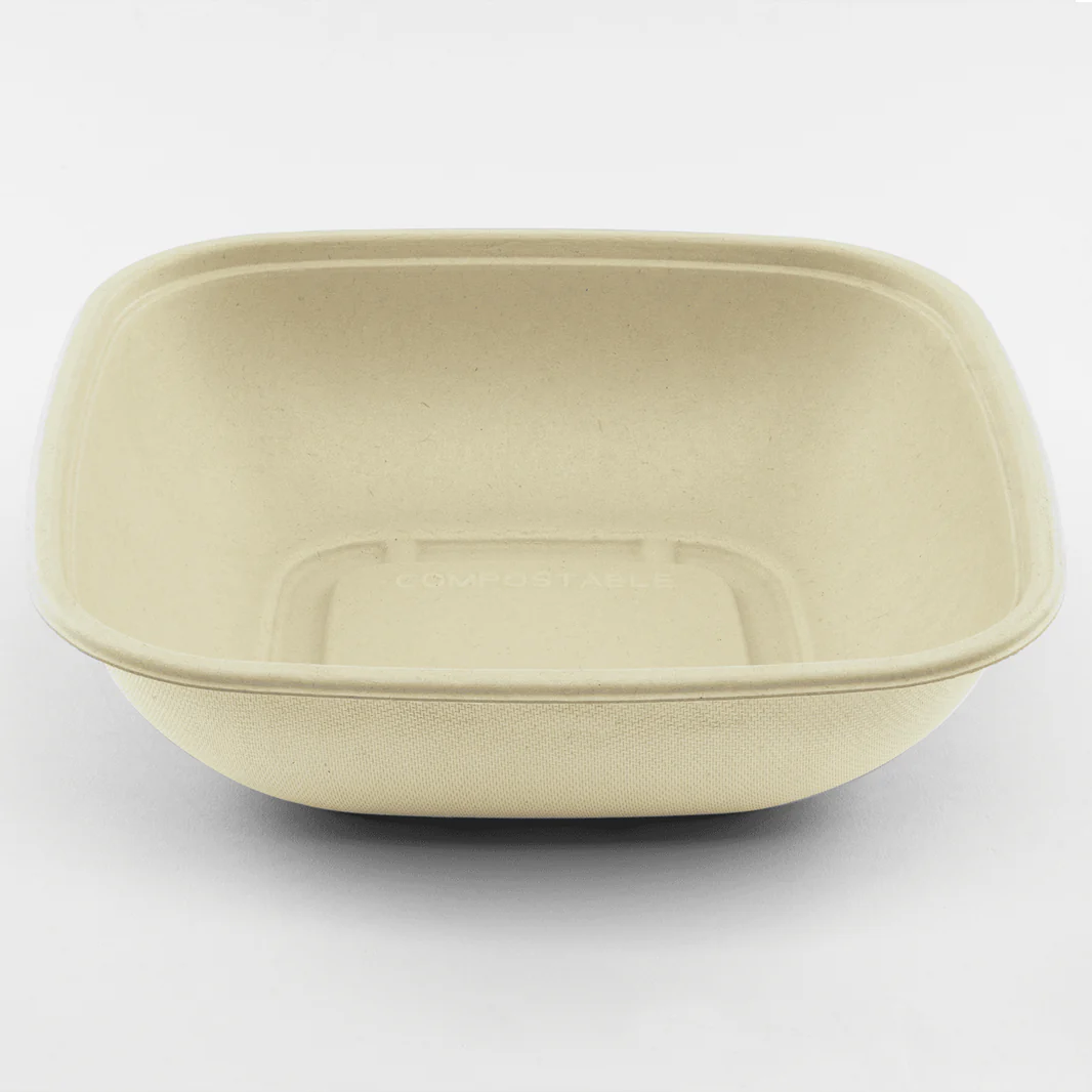48oz PFAS Free Bagasse Square Bowl, Natural