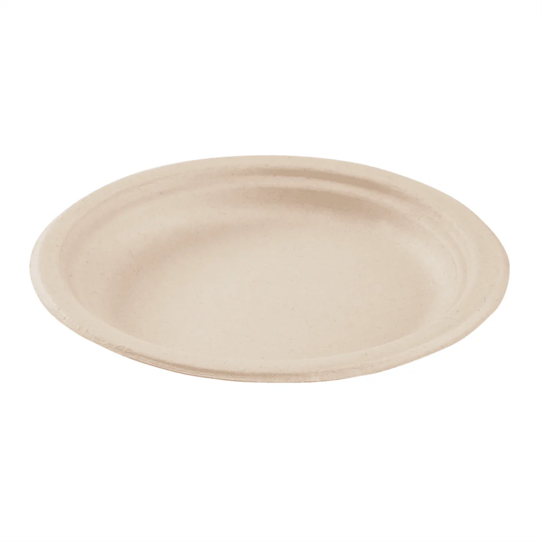 6" PFAS Free Compostable Bagasses Round Plates, Natural