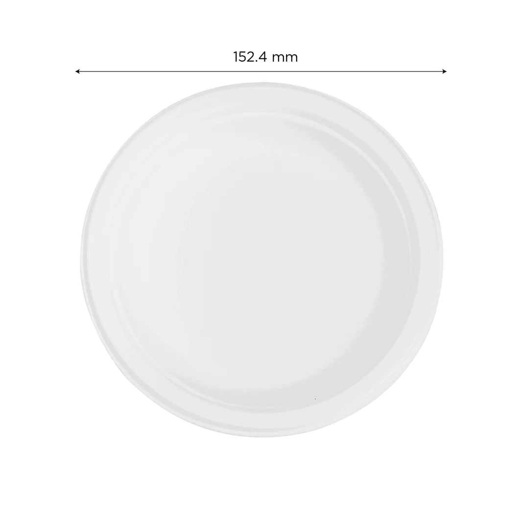 6" PFAS Free Compostable Bagasses Round Plates, White