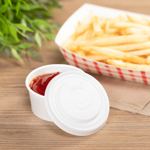 62mm Compostable Flat Lid for 2 oz Eco-Friendly Paper Portion Cup