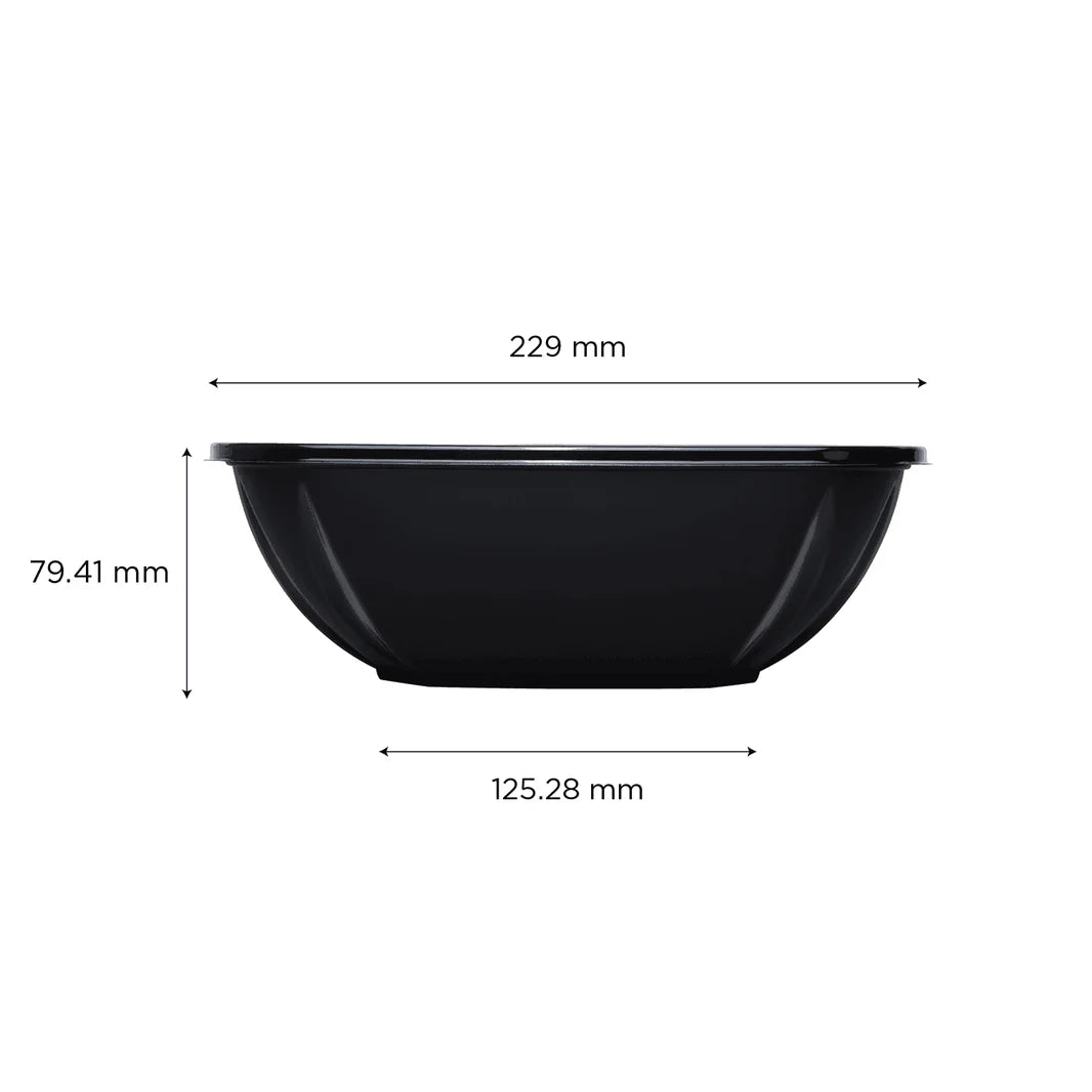 64oz PET Square Bowl, Black