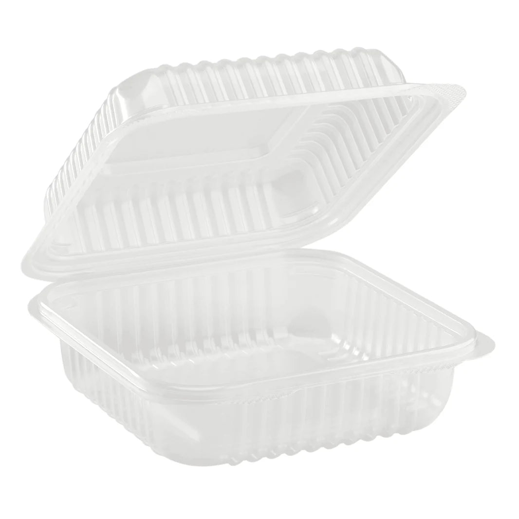 Introducing our 7" x 7" PP Plastic Hinged Container! This clear, durable container is perfect for storing and transporting food items, reducing waste and keeping your food fresh. With its hinged design, you'll never have to worry about losing a lid again. Upgrade your food storage game today!