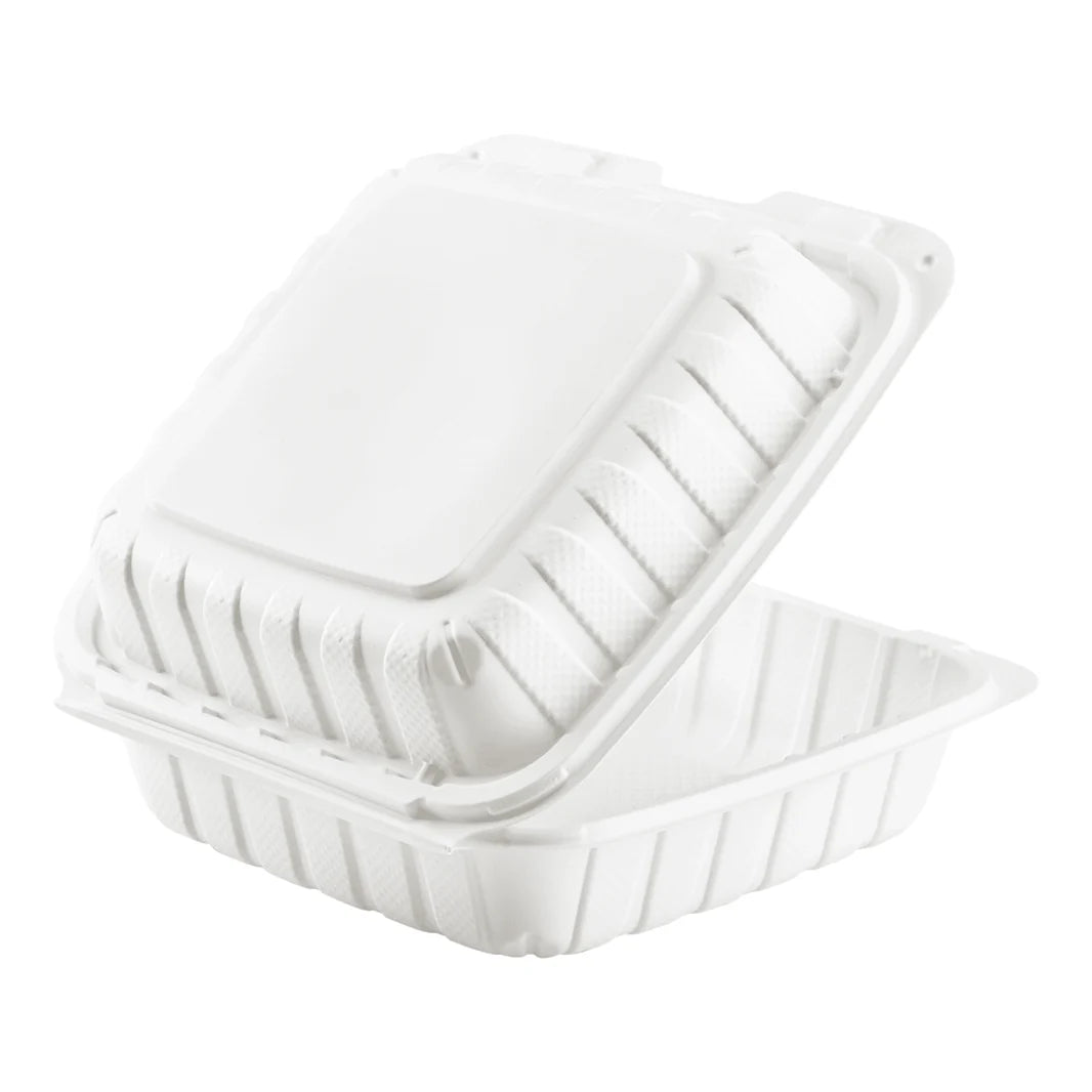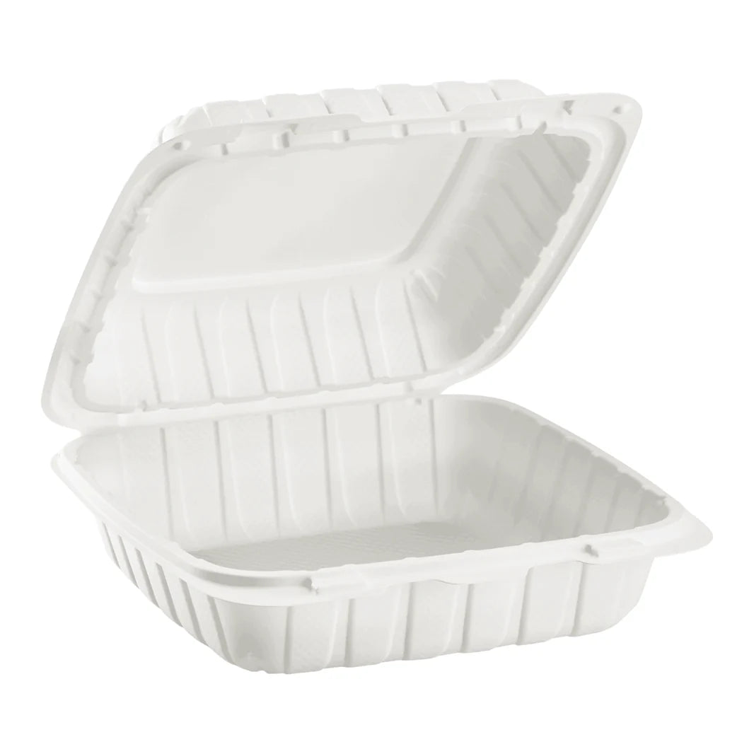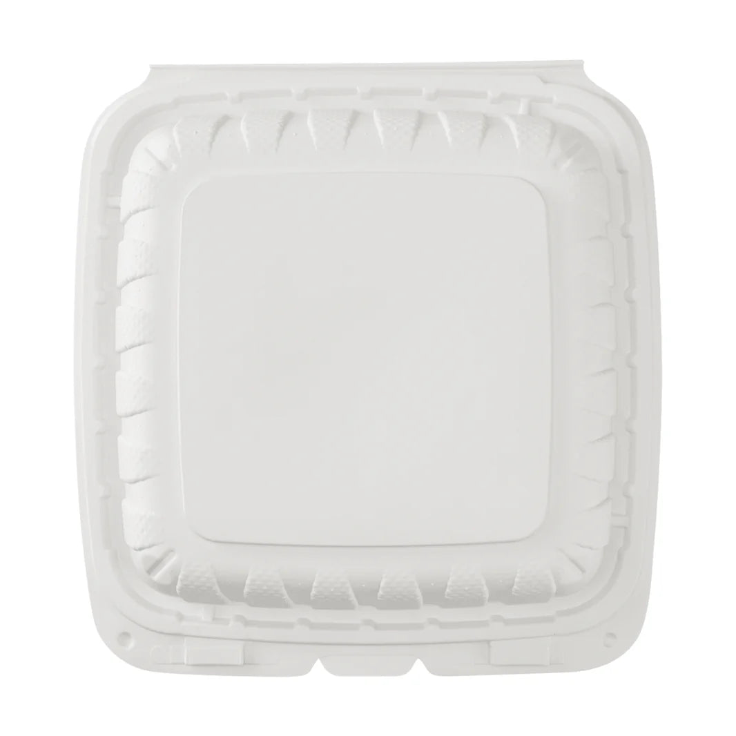 8" x 8" Mineral Filled PP Hinged Container, White