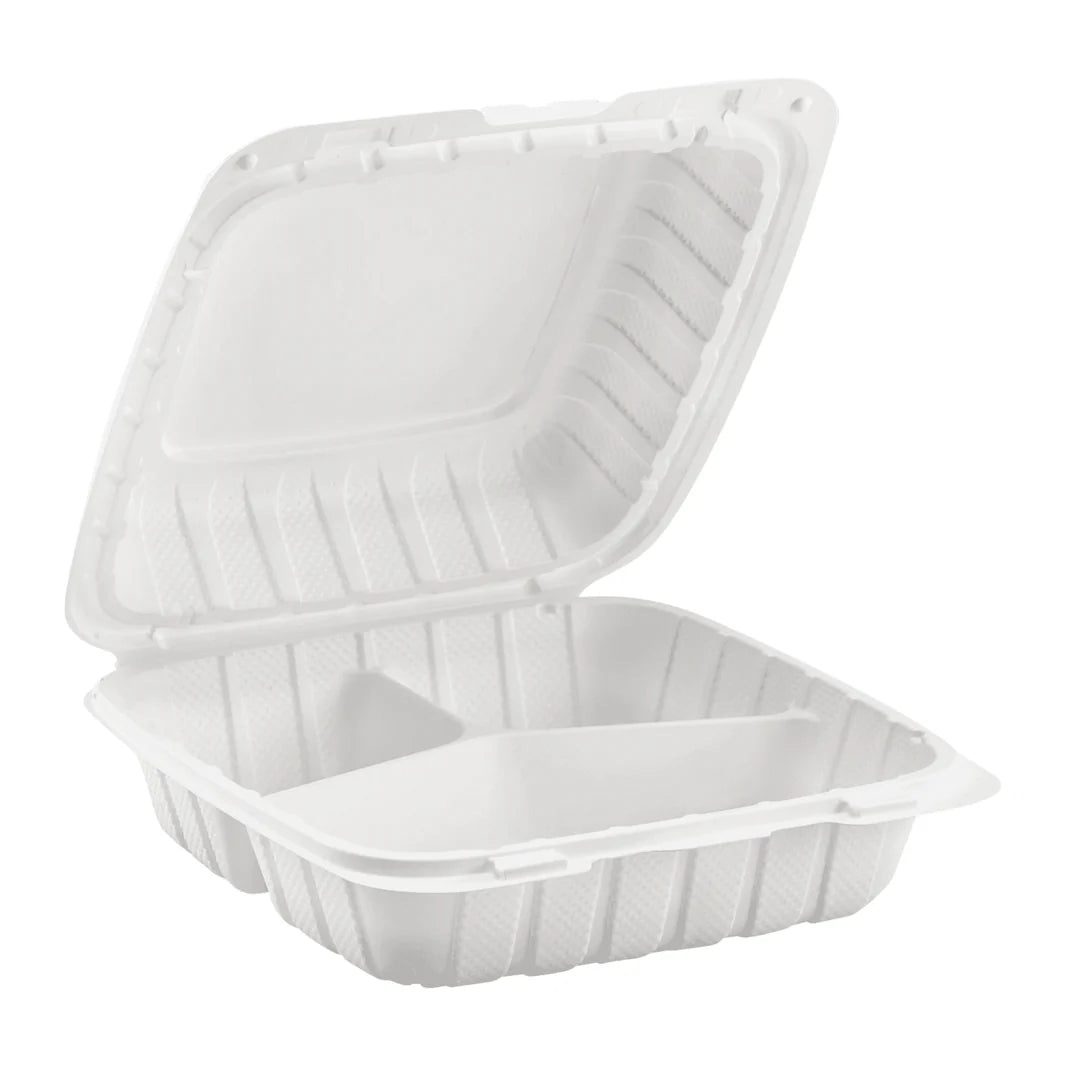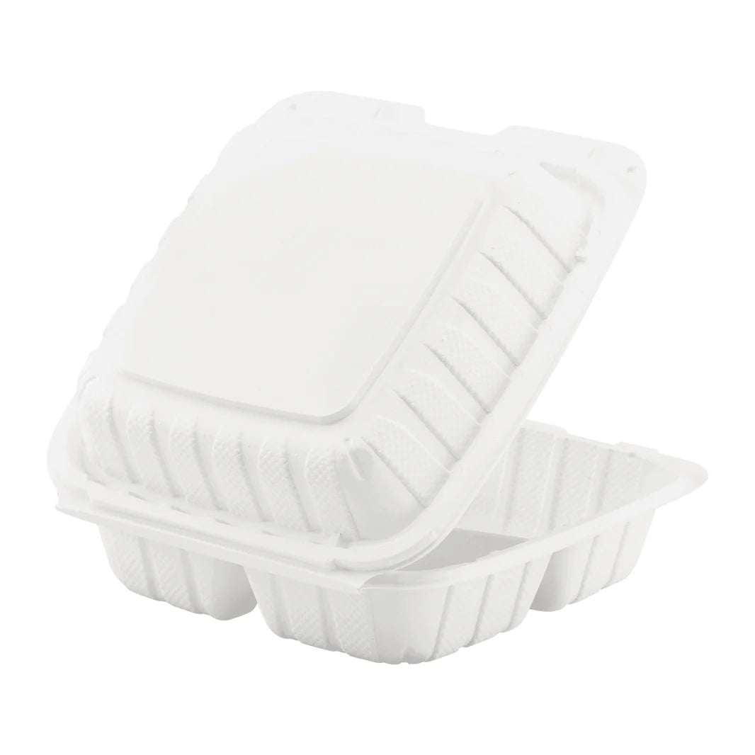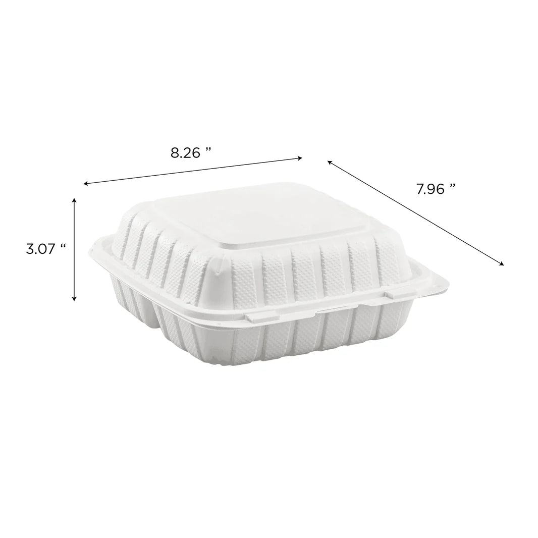Experience the convenience of our 8" x 8" Mineral Filled PP Hinged Container with 3 compartments. Made of durable pp material, it allows for easy storage and transport of your meals. Keep your food organized and fresh in its separate compartments. Perfect for on-the-go meals and meal prep.