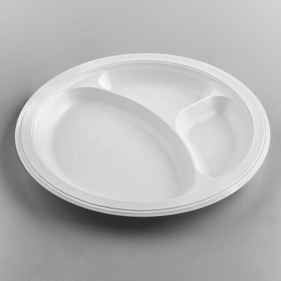 9" Mineral Filled PP Round Plate, White, 3 Compartments