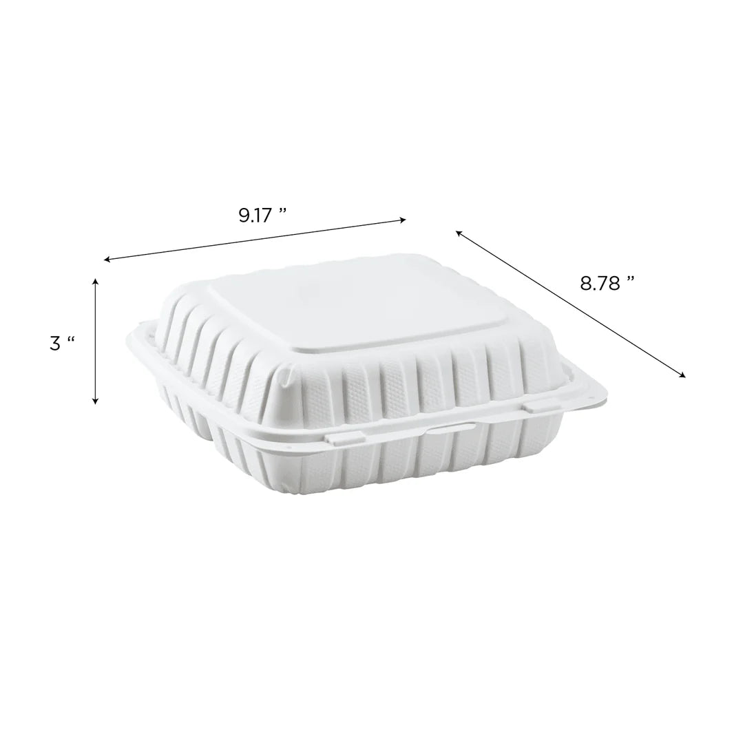 Maximize your food storage with our 9" x 9" Mineral Filled PP Hinged Container. With 3 compartments, this container offers ample space for your meals and snacks. The sturdy PP material ensures long-lasting use, making it perfect for daily use or meal prepping. Say goodbye to messy meals and hello to organization and convenience.