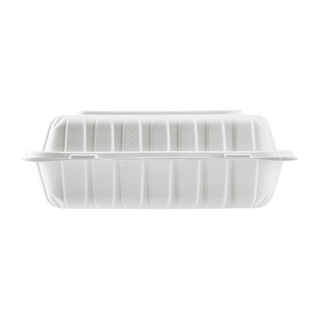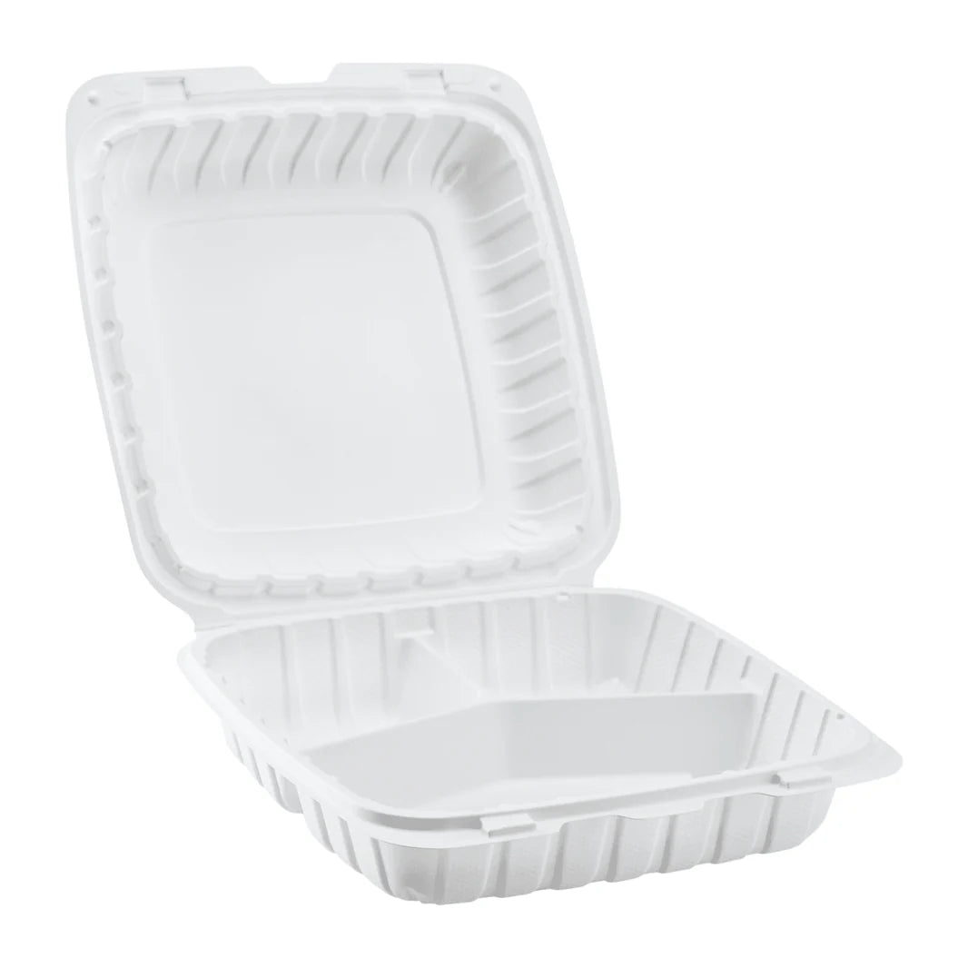 9" x 9" Mineral Filled PP Hinged Container, White, 3 compartments