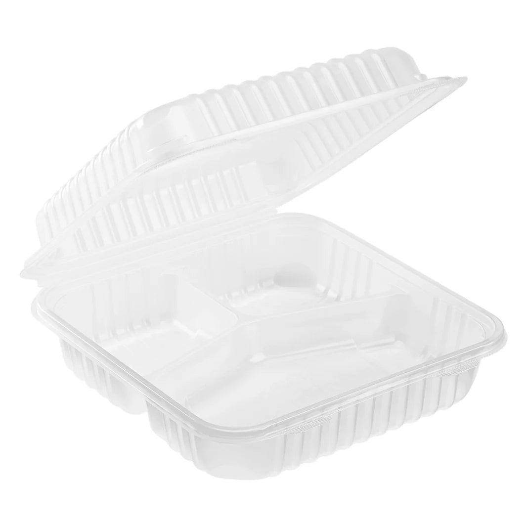 9" x 9" PP Plastic Hinged Containers, 3 Compartment