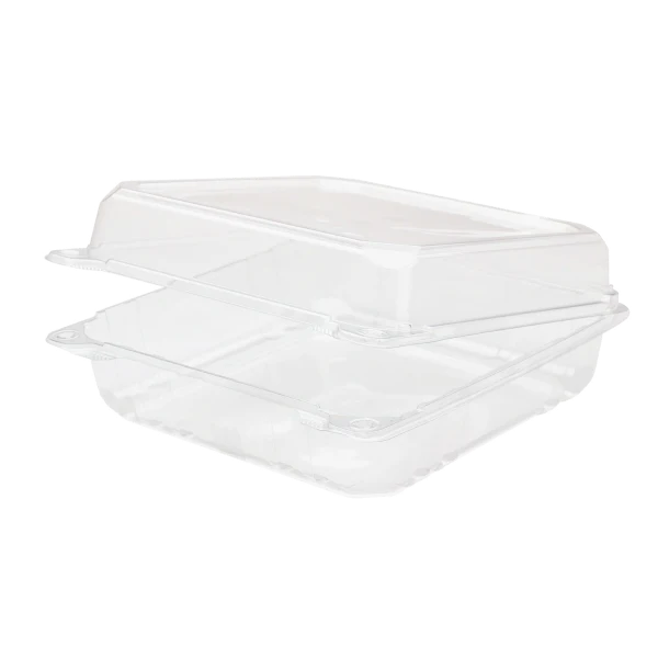 9"x9" PET Plastic Hinged Containers, Clear