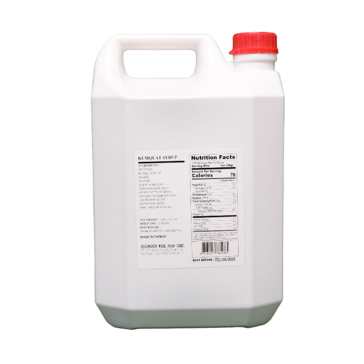 Introduce a unique flavor to your restaurant drinks, desserts, or bubble tea with Oval Kumquat Syrup. Made from Orval Kumquats, this syrup is a must-have for any drink or dessert menu. Enhance your offering with this delicious and versatile addition.