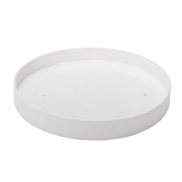 Upgrade your food packaging game with our Paper Lid for 32 oz Gourmet Paper Cold/Hot Food Containers. Made of sturdy paper and designed for easy handling, this flat lid ensures secure closure and freshness for your delectable treats. Impress your customers and keep your food fresh with our paper lid!