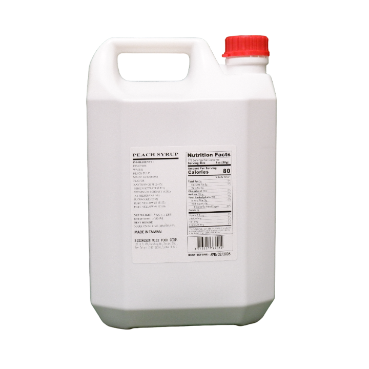 Enhance your drinks and desserts with our Peach Syrup, made with real rose to add a unique and delicious flavor. Perfect for restaurants, bubble tea shops, and more. Elevate your beverages and satisfy your customers with our flavorful syrup.