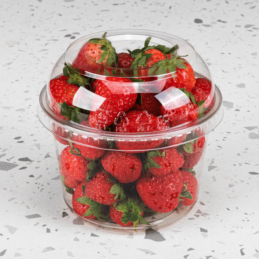 Upgrade your deli selection with our PET Dome Lid! Made for 8-32oz PET Round Deli Containers, this dome lid provides a secure fit to keep your food fresh and protected. Impress your customers and boost sales with this essential addition to your deli supplies.